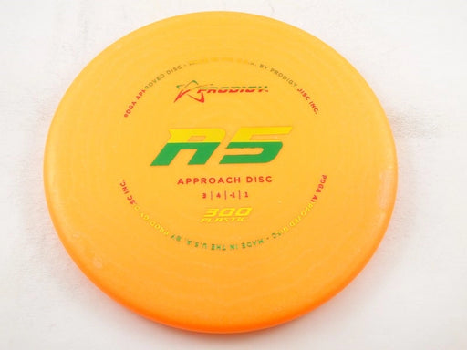 ProdigyOriginal price $12.99 - Original price $12.99Original price$12.99$12.99 - $12.99Current price $12.99| /The Prodigy A5 in 300 Firm plastic is a neutral-to-stable approach disc crafted for players who want a straighter flight with a crisp, clean releas...