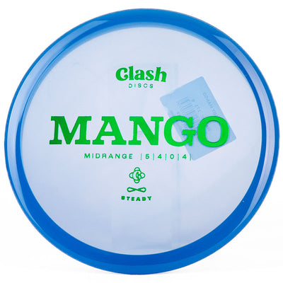 Clash's Mango is an overstable midrange that will get you the distance you need while fading hard at the end. The steady plastic, as the description describes, is grippy and gummy that feels great and is just high quality that will last you a long time. This disc will allow you to grow in confidence as it is a disc that will allow your game to evolve and grow, you will be making shots that you didn't know you were capable of. It is a great disc that you will fall in love with.