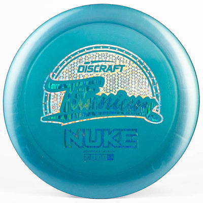The Discraft Nuke (Titanium) is an overstable distance driver that is made with very stable plastic and is designed for power distance drives. There's a reason you see every Discraft-sponsored player bag a Nuke: because it is a long distance bomber for anyone with developed arm speed.