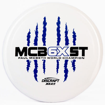 Own a piece of disc golf history with the Discraft Paul McBeth McBeast 6x Claw ESP Heat. This limited edition commemorative disc celebrates Paul McBeth's historic sixth world championship win. Featuring the renowned Heat distance driver in ESP plastic, this disc combines collectability with top-level performance.