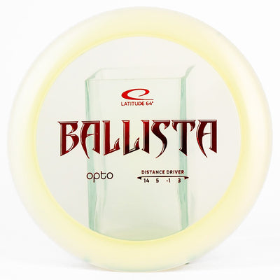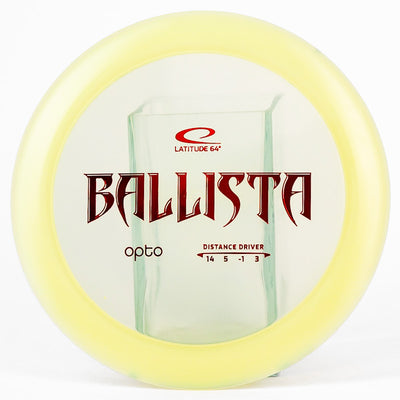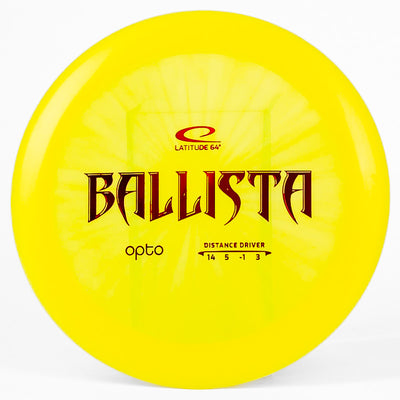 The Latitude 64 Ballista in Opto plastic is an insanely fast disc golf distance driver that is overstable with lots of glide. Latitude 64's Opto plastic is extremely durable and has decent grip; an excellent plastic for a distance driver.