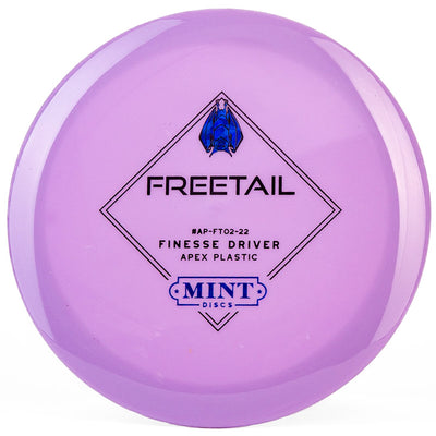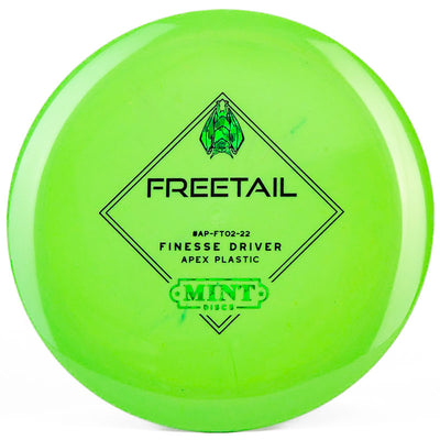 The Mint Discs Freetail (Apex) is a beginner friendly understable disc golf driver made with premium plastic that is easy to throw. Mint's Apex plastic is their premium plastic that is known for its durability, grip, and somewhat waxy-like feel in the hand. The Apex Undertaker is a fantastic understable disc with tons of glide that will allow players with slower arm speeds get a significant amount of distance. If you need an understable driver give the Mint Discs Apex Freetail a throw or two!
