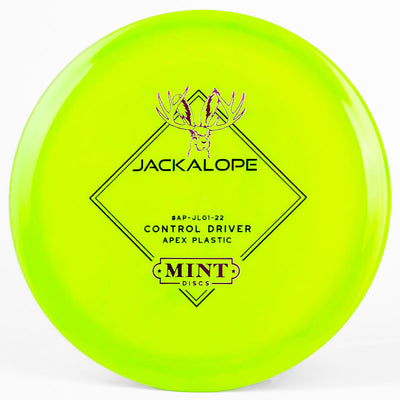 The Mint Discs Jackalope in Apex plastic is a super beginner friendly understable fairway driver that is very forgiving. Mint's Apex is their premium grade plastic blend that holds its stability well and has a slight waxy feel which allows for a clean release every time you throw it.