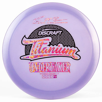The Discraft Undertaker (Titanium) is a straight flying disc golf driver made with gorgeous premium plastic and a variety of 2-color stamps. Immediately out of the box the Titanium Undertaker has a straight flight path if thrown flat, and can take a decent amount of speed as well. With slower arm speeds this disc will fly like an overstable control driver that can handle a decent amount of wind. With fast arm speeds it will flip up to flat when thrown on hyzer and it perfect for long straight shots through the woods when it is imperative you hit your line. Whether you are a new player with some experience or a seasoned professional, the Discraft Titanium Undertaker is an incredibly adaptable control driver!