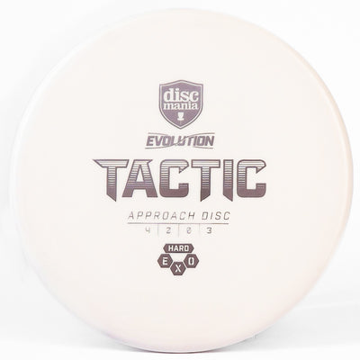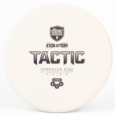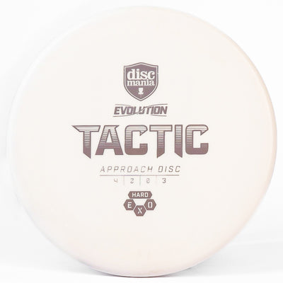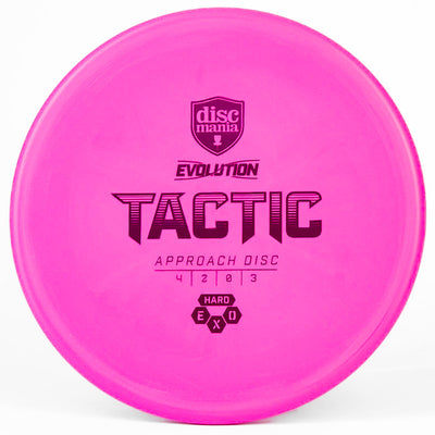 The Discmania Tactic (Hard Exo) is a grippy, overstable approach disc that is perfect for long-distance upshots and short drives off the tee. Dismania's Hard Exo plastic is a baseline plastic that has insane grip and feels great in the hand for both forehand or backhand shots. The low amount of glide on the Tactic lets your approach shots sit down quickly under the basket, so you don't have to worry about huge skips or unreliable bounces on your upshots. If you are a fan of comfortable, dependable approach discs then give the Discmania Exo Hard Tactic a shot!