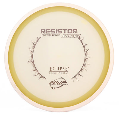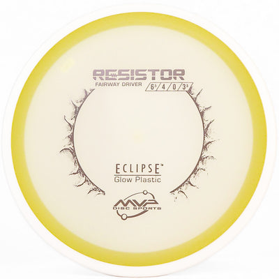 The MVP Glow Resistor is an overstable fairway driver that is made with Eclipse plastic, the brightest glowing plastic on the market. It is described as a "baby Firebird" and is slower than other overstable (OS) drivers, making it easier to handle for players with lower arm speeds (although I would not recommend it for beginners).