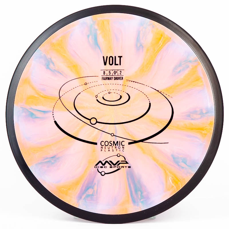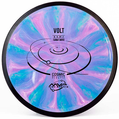 The MVP Volt in Cosmic Neutron plastic is a slightly overstable disc golf fairway driver that is dependable in most situations. MVP's Cosmic Neutron plastic has the same grip and durability as traditional Neutron but with an awesome vibrant, swirly color effect. This disc is ideal for forehand throwers as it fits nicely in the hand and is easy to control. If you need a reliable control driver with fun colors, the MVP Cosmic Neutron Volt is an A+ choice.