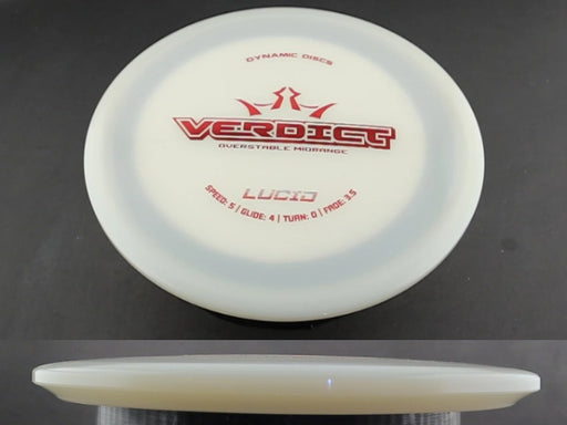 Dynamic DiscsOriginal price $17.99 - Original price $17.99Original price$17.99$17.99 - $17.99Current price $17.99| /The Lucid Ice Verdict delivers trusted midrange stability in a premium, stiff, and translucent plastic blend. Known for its dependable fade and cle...