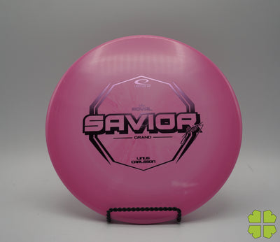 The Savior was designed to fill the gap in our disc lineup as an overstable approach disc. The disc is a bit of a hybrid between a midrange and a putter, resulting in a ‘neat’ grip and a flat upper surface ideal for forehand shots.