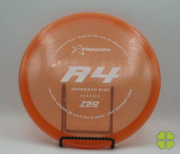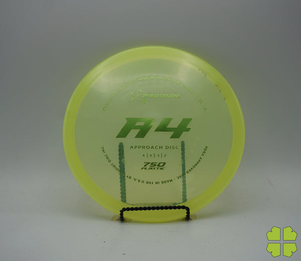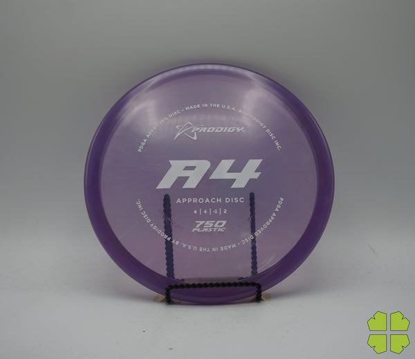 The Prodigy Disc A4 is the latest in our range of approach discs. The A4 is a slightly over stable disc that fills the distance gap between midranges and putters and is designed for all skill levels. The disc is consistent and reliable in moderate wind conditions and perfect for short approach shots. It works equally as well for backhand or sidearm throwers. The A4, like the A3 has a bead on the rim. You can expect it to fly slightly less stable than the A3 with an extra 40-50 feet in distance.