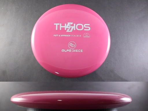 The Alfa Discs Theios in Crystal plastic is a stable, glidey putter designed for smooth, straight flights and pinpoint control. Built with a clean, beadless profile and exceptional grip, the Theios is a versatile disc that shines both on the putting green and for controlled approach shots.
