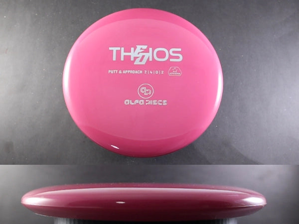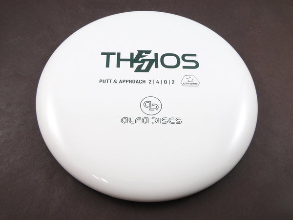 The Alfa Discs Theios in Signature Chrome plastic is a premium, stable putter made for smooth, consistent flights and a confident feel on every throw. Designed for players who demand precision and control, the Theios delivers a clean release, reliable fade, and excellent glide — perfect for putting, approach shots, and controlled tee throws.