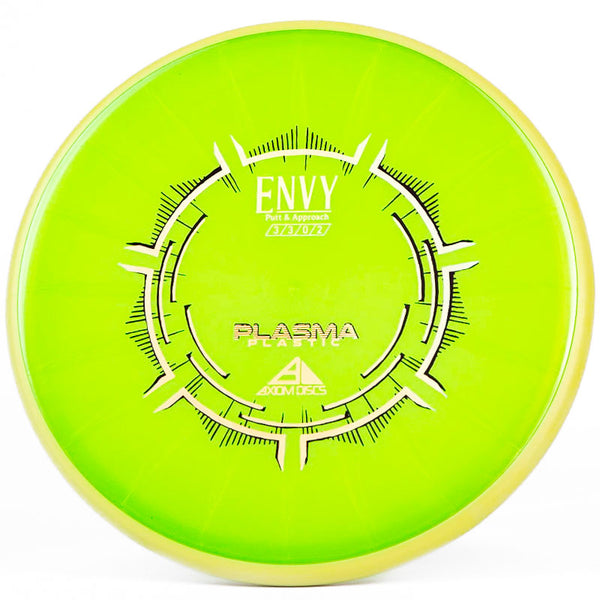 The Axiom Envy Plasma is a stable to slightly overstable putt & approach disc that is great for players of all skill levels. The Plasma Envy is the most overstable version that Axiom makes and the premium plastic maintains its stability for a long time before beating in. For beginners, this disc makes a great overstable approach disc for windy rounds while experienced players will be able to shape it into pretty much any line imaginable. If you need a popular putter/approach disc in premium stable plastic then give the Axiom Plasma Envy a throw or two!