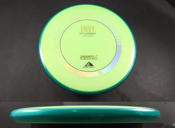 The Axiom Envy in Prism Plasma plastic blends a metallic Plasma flight plate with a bright, durable Proton rim, creating one of the sharpest-looking Envys on the market. This premium combination offers a silky, premium grip with added rigidity in the rim, giving the Envy its familiar torque-resistant, straight-to-stable flight. It’s a dependable throwing putter with eye-catching two-tone style.
