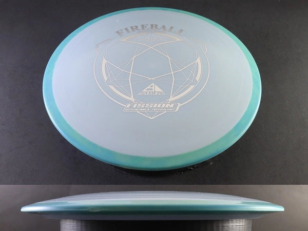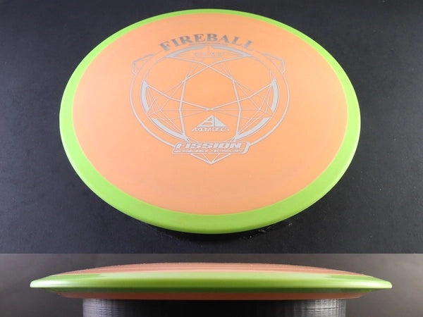 In Fission, the Fireball still shows its characteristic zero turn and controlled low-glide flight, but with a slightly more workable feel at lighter weights. Expect a straight, torque-hardy high-speed push and a confident, sweeping fade. The lighter construction makes it easier to shape hyzer lines, throw touch forehands, and achieve full-flight flex shots without sacrificing stability. Even the lightest Fission Fireballs remain reliably overstable.