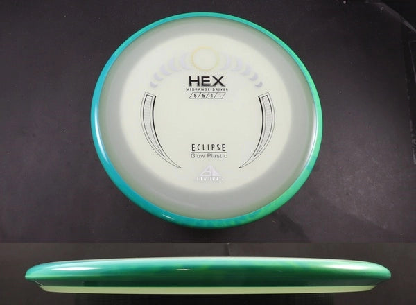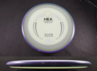 The Axiom Hex in Eclipse 2.0 plastic brings the fan-favorite straight midrange into one of the brightest and most durable glow plastics available. Eclipse 2.0 offers a slightly firmer feel with exceptional grip and industry-leading glow performance, making the Hex a trustworthy option for both day and night rounds. Its shallow, clean profile and beadless rim pair perfectly with this stable glow blend, giving players unmatched control on technical lines.