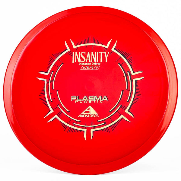 The Axiom Insanity Plasma is a low profile disc golf control driver with premium plastic and is excellent for advanced beginners and intermediate players. Axiom's Plasma plastic is both comfortable in the hand and durable on the course. The disc's flight path is accurate to its flight numbers, with a slight turn, making it ideal for low ceiling tunnel shots and heavily wooded courses. The bottom line is the Axiom Plasma Insanity is great for beginners and experienced players, flies true to its flight numbers, and is a solid addition to anyone's bag!