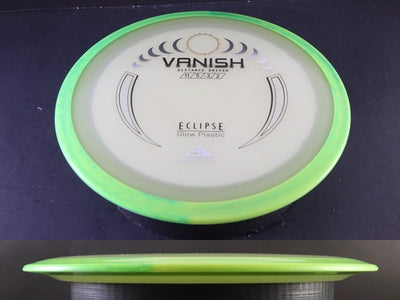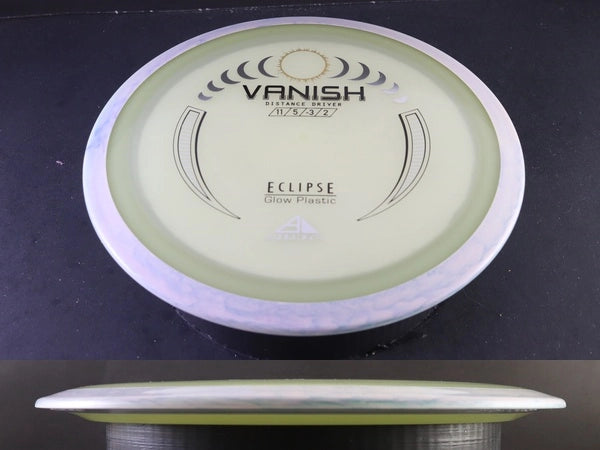 The Axiom Vanish in Eclipse 2.0 plastic brings glow-ready performance to one of Axiom’s most workable distance drivers. Eclipse 2.0 is known for its exceptionally bright, long-lasting glow while still offering a firm, premium feel with solid durability. This blend tends to add a touch of stability compared to Neutron, giving the Vanish a bit more control without losing its easy distance potential.