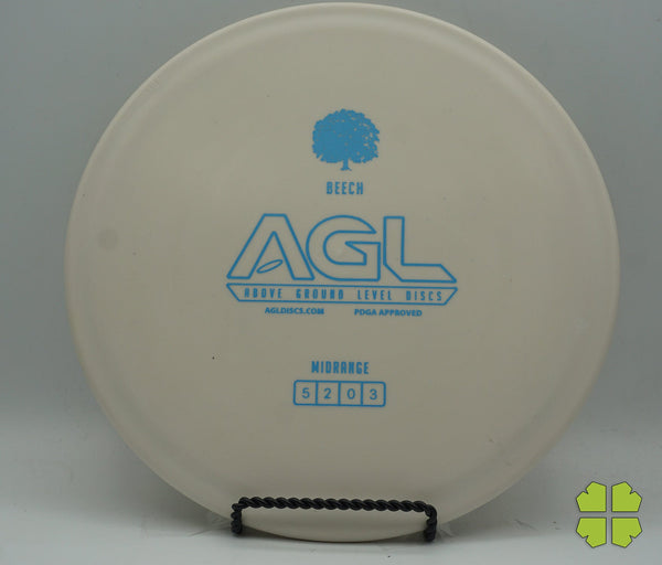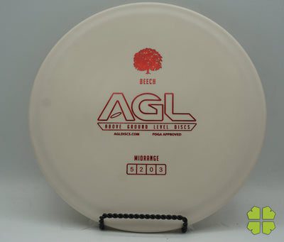 The AGL Discs Beech is an overstable midrange disc with a double bead on it. It's also got a very unique angle from the flight plate down to the edge of the disc, allowing you amazing grip when throwing it both forehand and backhand. With the flight numbers of 5/2/0/3 the Beech can definitely handle the power on those flex forehand shots, while still being a reliable overstable backhand mid. Some have called the Beech “the distance Bab”. Although it doesn't have as much glide as our other mid-range, it can if one is found with a little dome. Most of the Woodland models came out pretty flat, while the Alpine can have a little dome to them. We are very excited to bring to market a new mold that can be a great compliment to our current lineup. Enjoy that Beech life at AGL Discs!