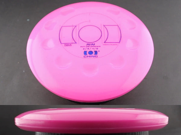 The Ching Juju in Thermo plastic is a premium, straight-flying putter and approach disc built for durability, control, and confidence. Combining Ching’s signature micro-groove technology with a high-performance plastic blend, the Juju delivers a clean release, extra spin, and consistent stability across all conditions. The Thermo blend offers a slightly firmer, more stable flight than softer plastics—making it an excellent choice for throwing putters, driving lines, and approach shots that demand accuracy.