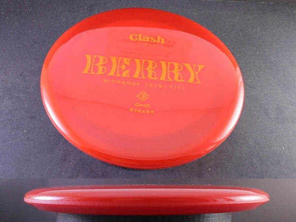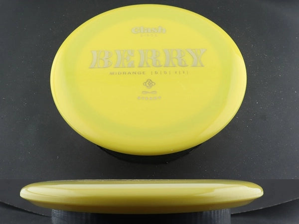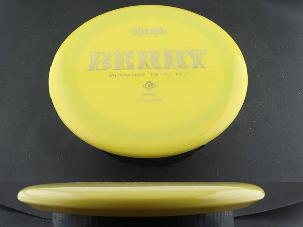 The Berry is a straight flying, all-purpose, midrange that holds a line. This disc provides a comfortable and controllable grip. Thrown flat, the Berry will exhibit a nice and glidey flight with a little turn and an equal amount of fade, giving you a very straight-flying disc. The disc is designed to be your go-to disc, capable of holding any line that you need it to hold.