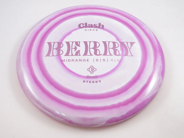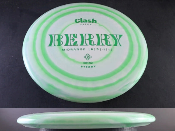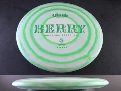 The Berry is a straight flying, all-purpose, midrange that holds a line. This disc provides a comfortable and controllable grip. Thrown flat, the Berry will exhibit a nice and glidey flight with a little turn and an equal amount of fade, giving you a very straight-flying disc. The disc is designed to be your go-to disc, capable of holding any line that you need it to hold.