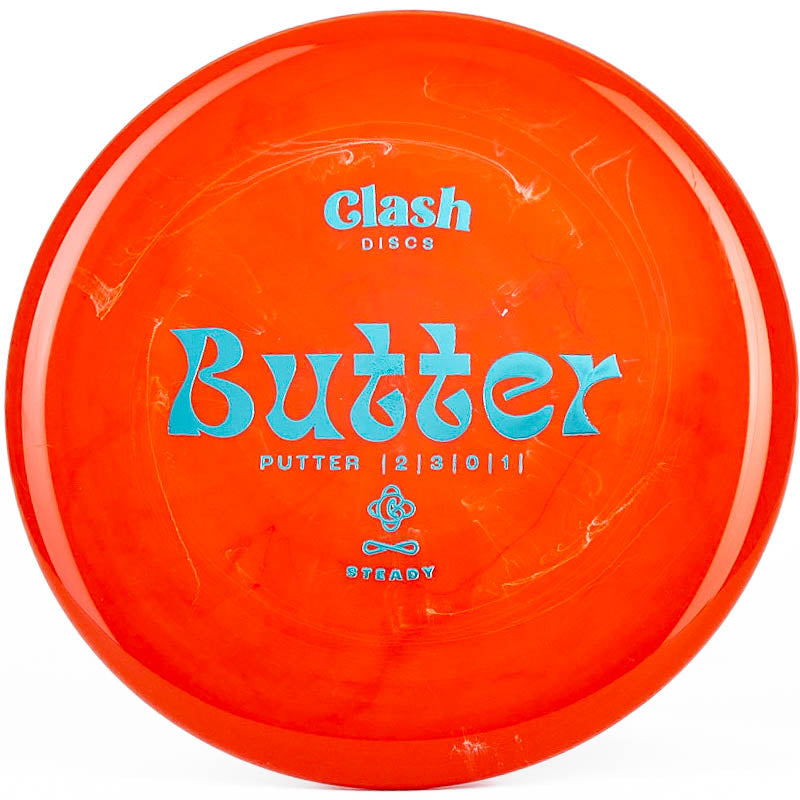 The Clash Discs Butter (Steady) is a stable and slow disc golf driver that is made with premium plastic that feels great in the hand. The Butter is great for players of all skill levels as it is very easy to throw regardless of arm speed. Check out the Clash Discs Steady Butter if you need a smooth flying putter made with premium plastic!