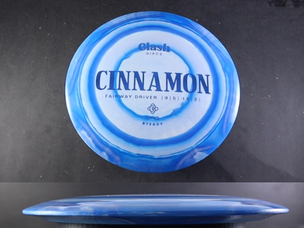 The Clash Discs Cinnamon in Steady Ring plastic pairs this smooth, neutral fairway driver with a premium blend designed for exceptional grip, long-lasting durability, and a slightly more stable, torque-resistant flight. Steady Ring features a grippy, semi-flexible core wrapped by a firmer outer “ring” that provides a cleaner release and added stability—similar to the way Halo-style plastics perform. This version of the Cinnamon keeps its effortless, glidey feel while offering more control for players who like to shape reliable fairway lines.