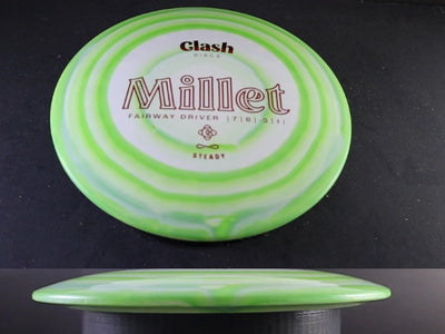 The Clash Discs Millet in Steady Ring plastic brings enhanced grip and durability to an already approachable, understable fairway driver. The Millet is designed for smooth, effortless control, giving players an easy-to-throw option that excels at shaping lines and achieving clean, glidey fairway shots. The Steady Ring blend adds a contrasting rim for improved hand feel and standout visuals, making this version of the Millet both functional and eye-catching.