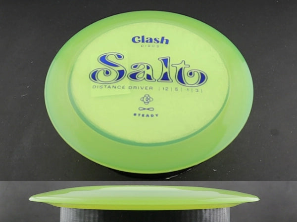 The Clash Discs Salt is an overstable distance driver desiged for the advanced player. It will fly far without sacrificing control. It provides good glide with a reliable fade. Salt is capable of being your workhorse out on the course.