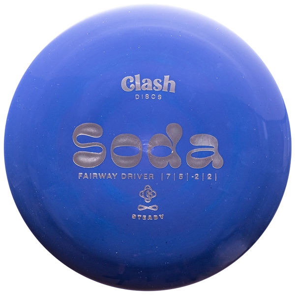 The Clash Discs Soda in Steady plastic gives this easy-to-throw, high-glide fairway driver a durable, premium feel. Steady plastic offers excellent grip with a smooth, slightly firm profile that holds its stability longer than baseline blends. Paired with the Soda’s finesse-focused design, this run shines for players who want effortless straight shots, workable turnovers, and reliable hyzer-flip control.
