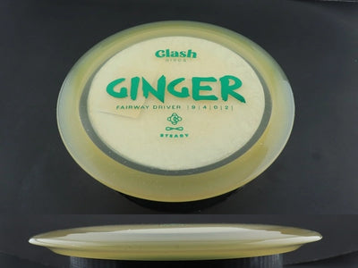 The Clash Discs Ginger in Steady plastic is a fast, stable control driver built for consistency and confidence. With a smooth rim and a slightly domey profile, the Ginger offers a clean release and a reliable flight that bridges the gap between fairway and distance drivers. The durable Steady blend provides a firm, grippy feel and long-lasting stability that holds up to heavy use.