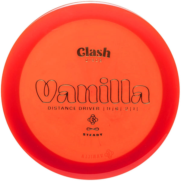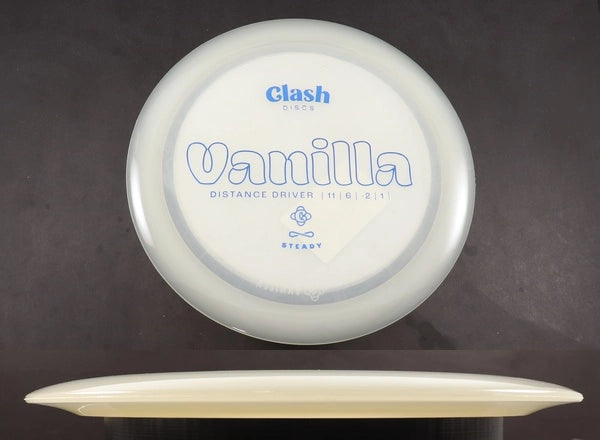 The Clash Discs Vanilla in Steady plastic is a smooth, neutral fairway driver designed for effortless control and reliable distance. Steady plastic offers a premium feel with excellent grip and durability, giving the Vanilla a comfortable release and consistent performance over time. This blend complements the mold’s easy-to-throw nature, making it a dependable option for shaping clean fairway lines.