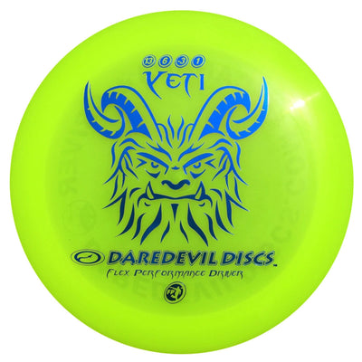The Daredevil Yeti in Flex Performance plastic is a fast, overstable distance driver built to handle power, wind, and demanding course conditions. Designed and manufactured in Canada, the Yeti combines high speed with reliable overstability, making it a top choice for players who want consistent control on big drives. The Flex Performance blend provides premium durability and a tacky, flexible grip that performs reliably in any temperature.