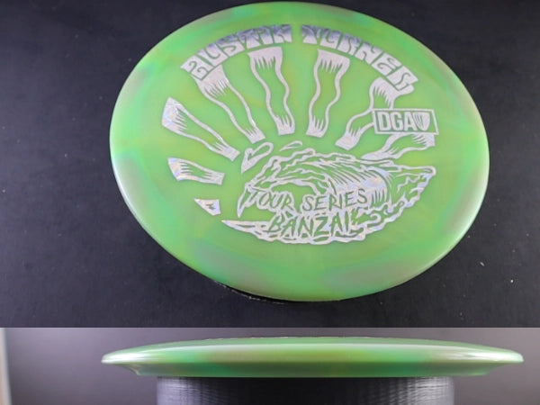 The DGA Banzai in Tour Series Swirl plastic is a dependable overstable fairway driver built for confident, controlled throws. As the stronger counterpart to the popular Pipeline—both named after Hawaii’s legendary Banzai Pipeline—the Banzai delivers the same smooth feel with added stability and a reliable finish. The premium Swirl plastic not only looks stunning but also provides excellent grip and durability.