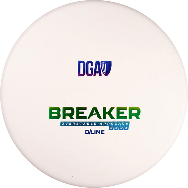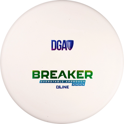 The DGA Breaker in D-Line plastic is an overstable putt-and-approach disc designed for control, reliability, and confident releases in all conditions. Featuring a low-profile shape and a smooth, flat top, the Breaker feels comfortable in the hand and delivers a clean, consistent release — especially on forehand approach shots.
