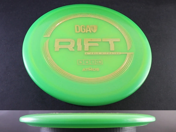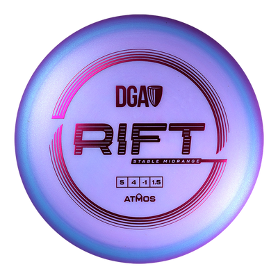 The DGA Rift in Atmos plastic is a point-and-shoot midrange designed for clean releases, smooth control, and dependable accuracy. With its comfortable rim and balanced stability, the Rift delivers a straight, consistent flight that makes it an instant favorite for players of all skill levels. It’s the kind of disc that does exactly what you tell it to — perfect for shaping lines, hitting tight gaps, and executing precise approach shots.
