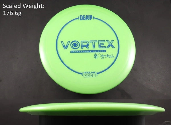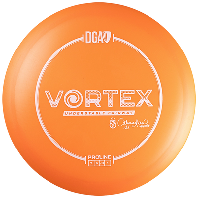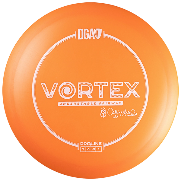 The DGA Vortex in ProLine plastic is a controllable fairway driver designed in collaboration with World Champion Catrina Allen. With its easy speed, exceptional glide, and workable stability, the Vortex offers effortless control for shaping smooth, accurate fairway lines. It’s the kind of disc that feels comfortable in the hand and flies exactly how you throw it — ideal for carving technical courses or threading wooded fairways.