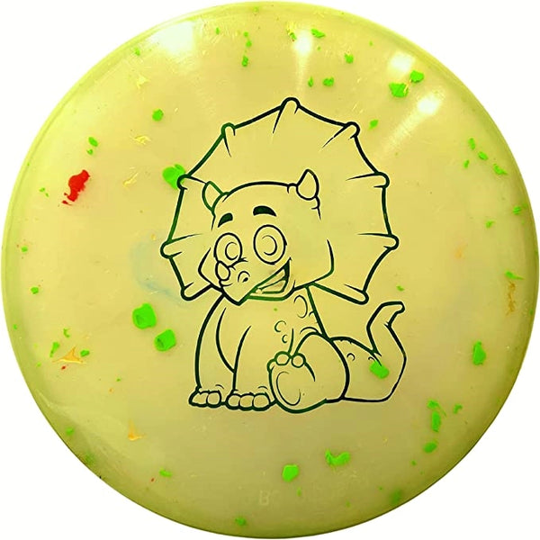 View full detailsThe Triceratops is a kid-friendly, ultra-light putter designed to make learning disc golf fun and frustration-free. Molded from the ABC Mone...