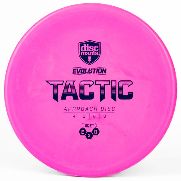 The Discmania Exo Soft Tactic is an overstable approach disc with minimal glide and soft, grippy plastic. Soft Exo plastic is one of Discmania's Evolution line base plastics that has an incredible amount of grip and has a little bit of bend to it. Although it isn't the most durable plastic, you can't beat the feel and comfort of the Discmania Soft Exo Tactic!