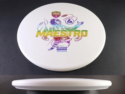 The Maestro flies straight with minimal turn and a firm, reliable fade at the end. Its lower glide keeps it from sailing past your target, making it ideal for controlled approaches and midrange drives where distance management matters. Throw it flat for a straight push and a clean finish, or trust it on slight hyzer lines when you want a predictable skip-free landing.