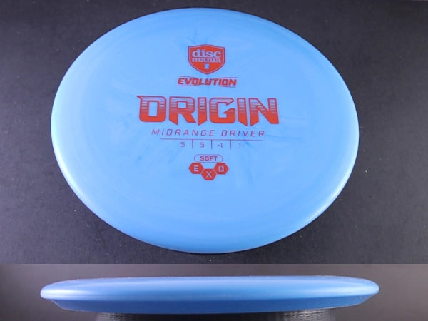 In flight, the EXO Soft Origin shows easy turn and smooth glide. Thrown with modest power, it flips up gently and glides on a long, straight-to-turning line before finishing with a mild fade. Its softer plastic minimizes ground play, allowing for controlled landings on approaches or touch shots in the woods. As it beats in, the Origin becomes even more workable—ideal for turnovers, hyzer-flips, and shaping tight technical lines.