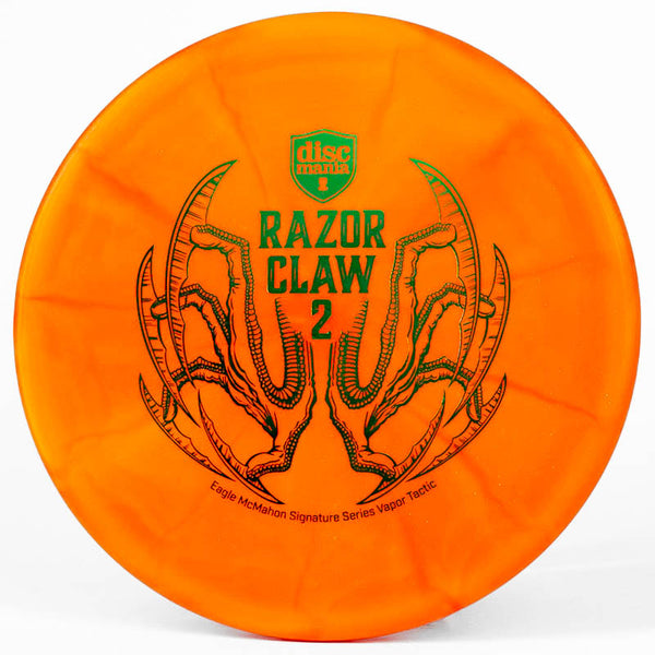 The Discmania Razor Claw Vapor Tactic is one of Eagle McMahon's Signature discs that comes with an awesome stamp and ultra-premium plastic. Discmania's Vapor plastic is an insanely durable premium-grade plastic that will hold its stability for longer than most other plastics and still has decent grip.