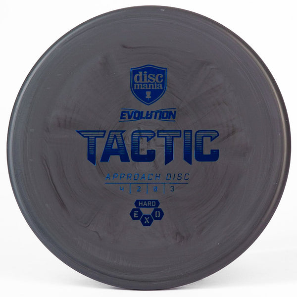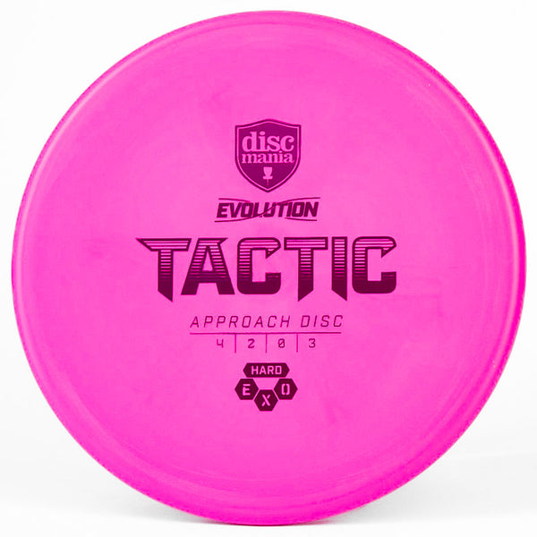 The Discmania Tactic (Hard Exo) is a grippy, overstable approach disc that is perfect for long-distance upshots and short drives off the tee. Dismania's Hard Exo plastic is a baseline plastic that has insane grip and feels great in the hand for both forehand or backhand shots. The low amount of glide on the Tactic lets your approach shots sit down quickly under the basket, so you don't have to worry about huge skips or unreliable bounces on your upshots. If you are a fan of comfortable, dependable approach discs then give the Discmania Exo Hard Tactic a shot!