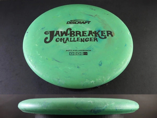 The Discraft Challenger in Jawbreaker plastic delivers this trusted, overstable putter in a grippy, swirled baseline blend known for its tacky feel and buttery-soft release. Jawbreaker plastic offers outstanding touch and control—especially for players who like a putter with a bit of flex and exceptional grip. Its signature marbled appearance makes each disc unique, while the blend’s medium softness provides a confident, clean release for both putting and short throwing.