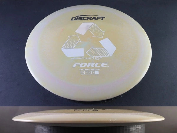 The Discraft Force in Recycled ESP plastic brings this iconic overstable distance driver into an eco-conscious premium blend. Recycled ESP is crafted from reprocessed premium plastics, giving it a grippy, slightly softer feel compared to fresh-run ESP while maintaining excellent durability. This version of the Force keeps its signature power-demanding overstability but adds a touch of extra glide and a smoother release, making it a great option for players who want premium performance with a reduced environmental footprint.