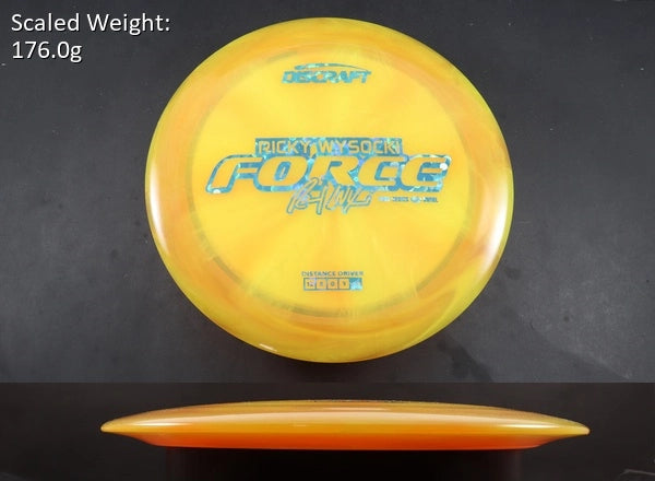 The Discraft Force in Signature Z Swirl plastic pairs one of Discraft’s most trusted overstable distance drivers with a tour-supporting, ultra-durable premium blend. Signature Z Swirl offers a firm, slick-yet-grippy feel and stunning multi-color swirl patterns, delivering a disc that looks incredible and performs with the consistency power throwers demand. This run provides a touch of added stability compared to ESP, making it ideal for confident, high-speed lines in any weather.