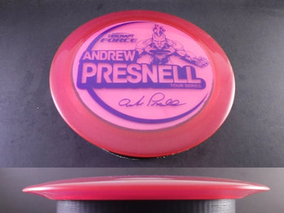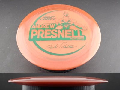 The Discraft Force in Tour Series Z Metallic plastic delivers this famously overstable distance driver in a premium, tour-supporting blend built for maximum stability, durability, and visual appeal. Z Metallic offers a stiff, high-gloss feel with shimmering metallic flakes that add both grip and style. This run is one of the most torque-resistant versions of the Force, making it a trusted option for players who demand consistency at the highest power levels.