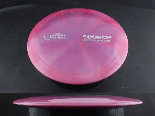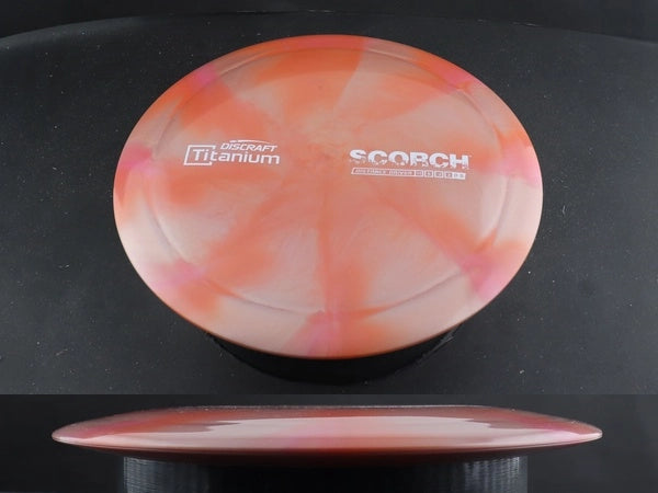 In flight, the Titanium Scorch offers controlled high-speed turn with exceptional glide and a dependable fade at the finish. Thrown flat, it flips up smoothly, carries forward on a long S-curve, and fades back without dumping. The Titanium blend tends to smooth out the turn and hold stability longer, making this Scorch especially useful for full-power drives, light headwinds, and long flex lines that need to finish clean.
