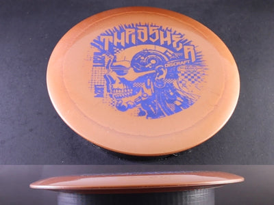The Thrasher is designed to turn and glide. Thrown flat, it flips up easily, drifts right (RHBH), and carries forward before finishing with a dependable fade. For moderate arm speeds, it delivers long, straight distance with minimal effort. Higher-power players can use it for controlled turnovers, hyzer flips, and distance lines that shape beautifully without burning into the ground. Titanium Sparkle plastic tends to add a touch of stability compared to ESP, helping the Thrasher stay controlled while still offering its signature turn.